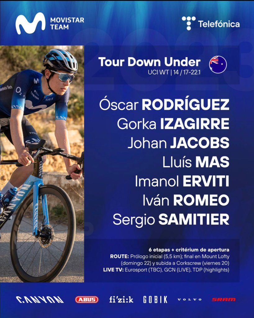 Convocatoria de Movistar para el Tour Down Under masculino © Movistar Team