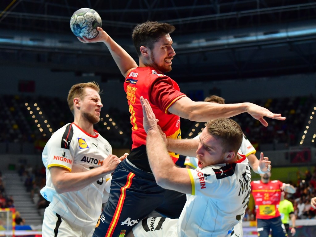 Por otro lado, en el partido contra Alemania pasó todo lo contrario, España salió muy mal al partido, y al descanso el marcador era de 20-11 a favor de los alemanes. Juri Knorr, que terminó el partido con 13 goles, y Johannes Golla, que hizo 6 goles, eran un constante dolor de cabeza para la selección española, que mejoró en la segunda mitad y logró maquillar el partido con 32-31.