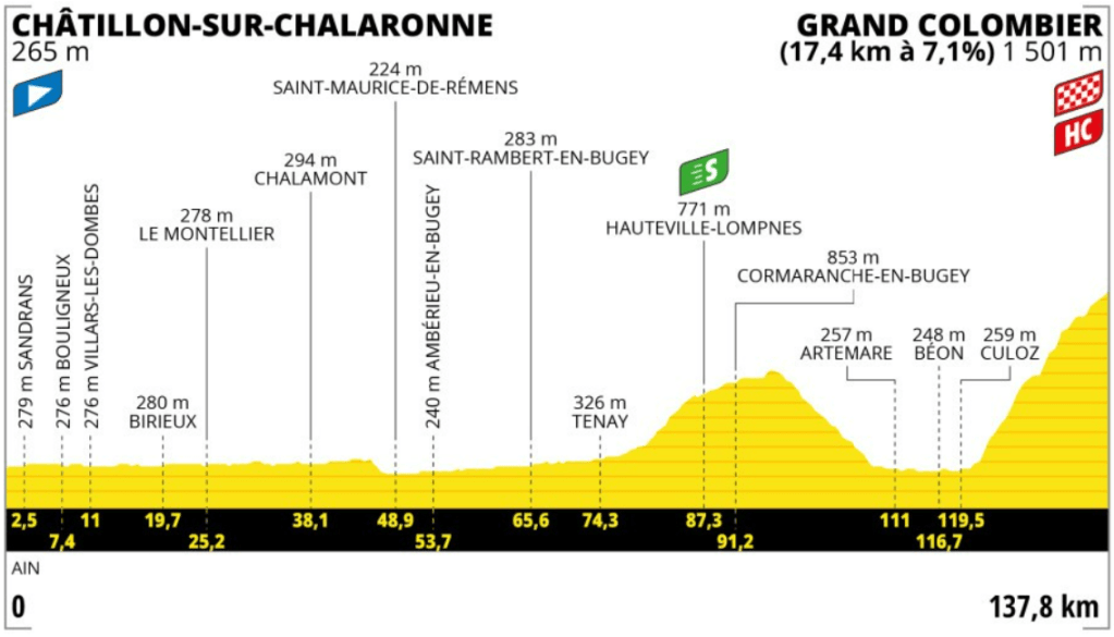 La etapa 13, pese a todo, será bastante atípica, debido a que será muy cortita, solo de 137’8 kilómetros, y con un único puerto puntuable, el Grand Colombier, en el que finalizará la etapa. Sus 17’4 kilómetros al 7’1% de media son perfectos para ver ataques, ya que los ciclistas deberían de llegar muy frescos al pie de la ascensión.