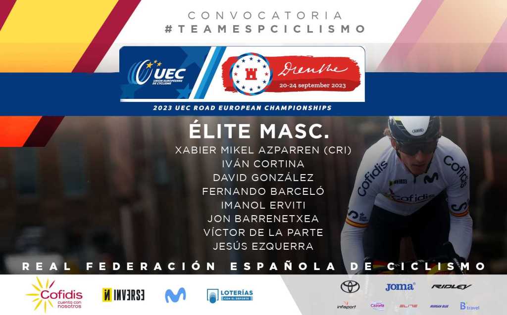 Hay que recordar que en el Mundial de Glasgow los sub-23 masculinos fueron los que mejores sensaciones dejaron, quedándose muy cerquita de las medallas, sobre todo Raúl García Pierna en la contrarreloj. Raúl parte en la convocatoria para el Europeo, junto a Iván Romeo, que también dejó muy buenas sensaciones en el Mundial y en el Tour del Porvenir, donde logró una victoria de etapa; además de Igor Arrieta, Enekoitz Azparren, Diego Uriarte y Javier Serrano. Raúl e Iván serán los encargados de realizar la contrarreloj.
