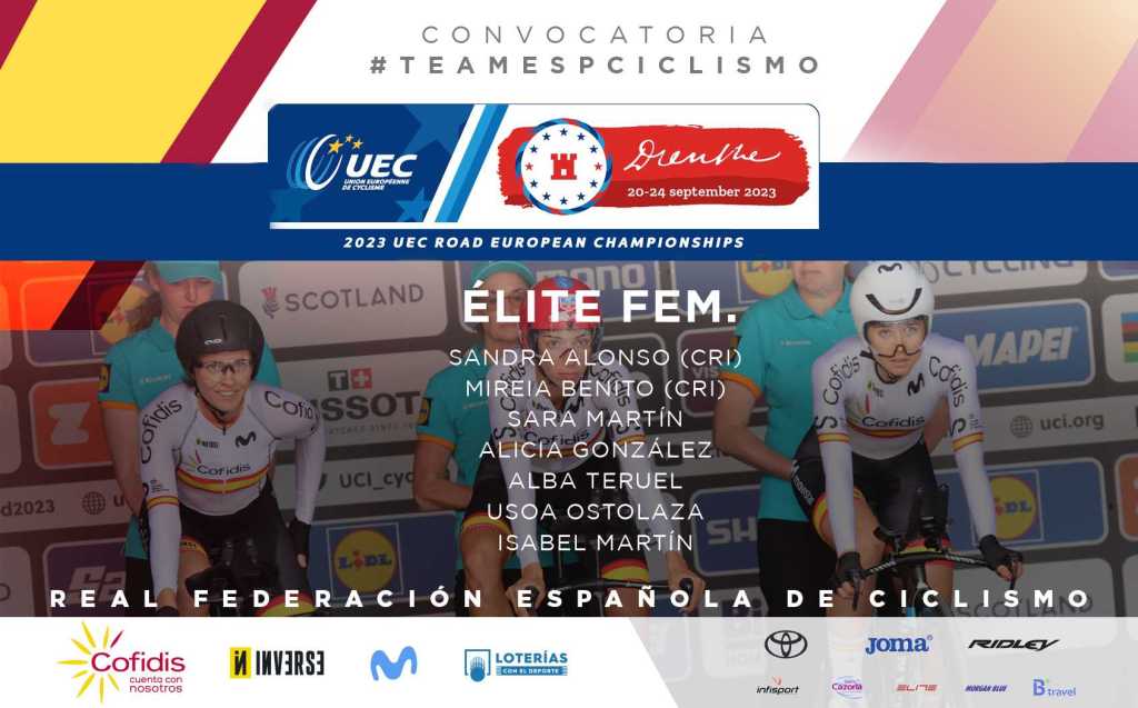 En este Europeo no estarán nuestras grandes escaladoras, ni Mavi García ni Ane Santesteban, ante un recorrido que claramente no les beneficiaba. Mireia Benito, Sandra Alonso, Sara Martín, Alicia González, Alba Teruel, Usoa Ostolaza e Isabel Martín serán las corredoras que formarán parte de la selección española en este Europeo, siendo Mireia y Sandra las encargadas de realizar la contrarreloj.
